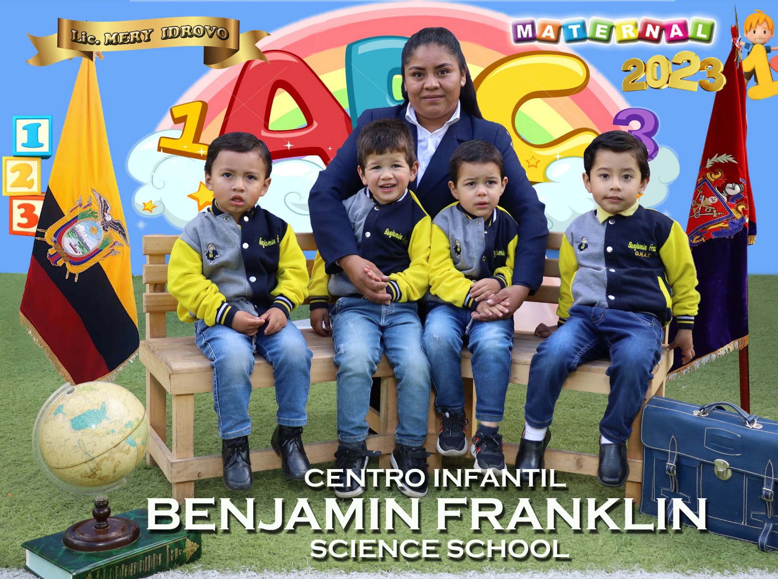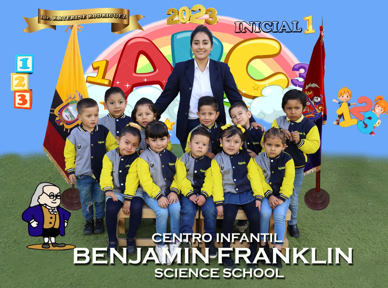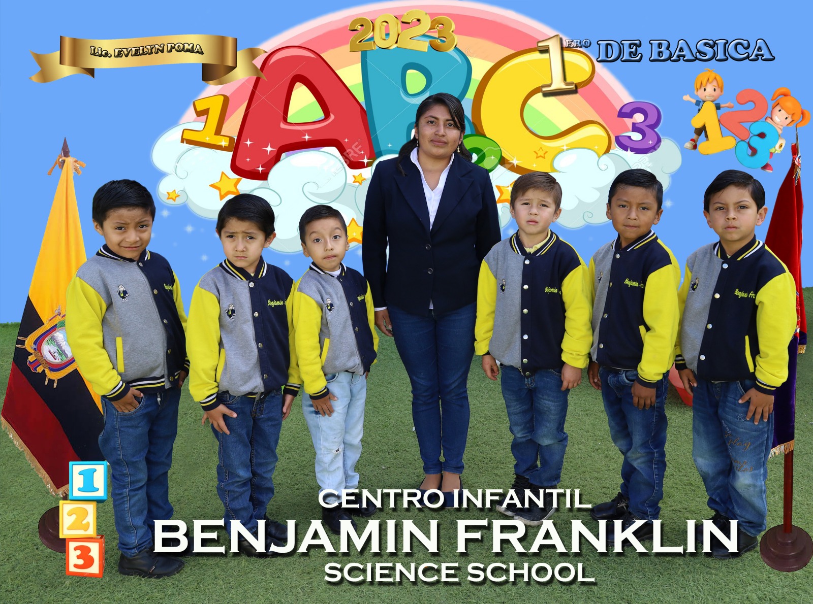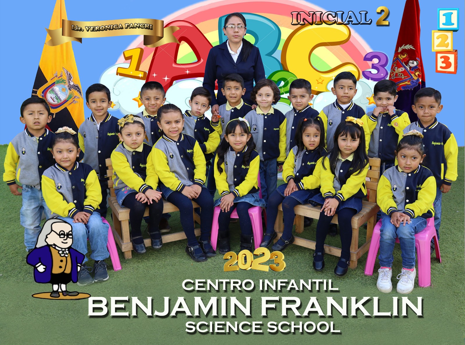 Docentes y estudiantes de la institución posan para la foto del recuerdo de finalización del período académico 2022 - 2023